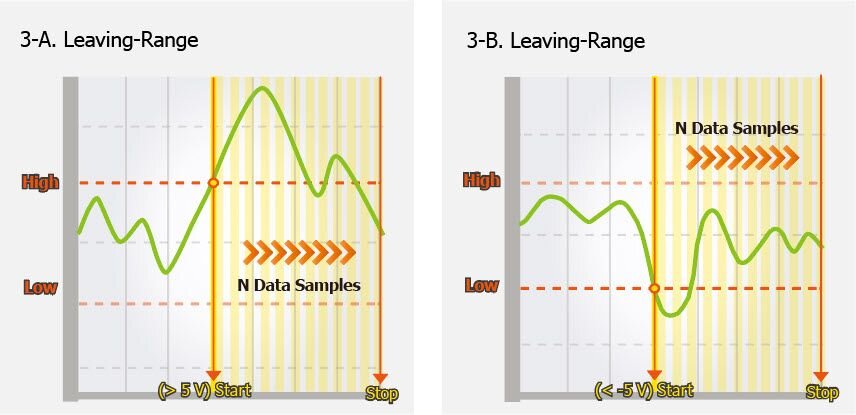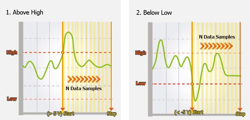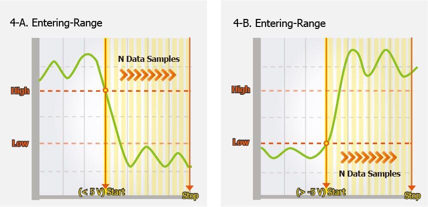 4. Entering-Range : Trigger when the signal enters the high and low level region, collect N data.