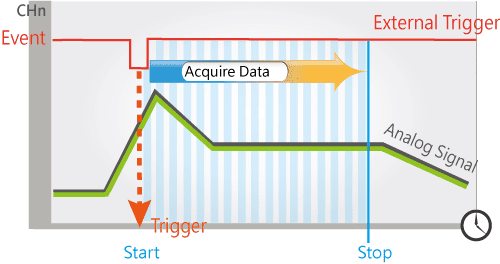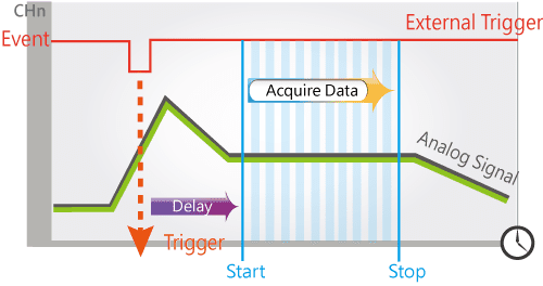 Programmable: Software/External clock trigger/Digital trigger (Post-trigger/Pre-trigger/Delay-trigger), Analog threshold trigger |