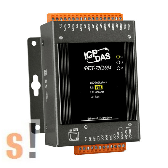 A PET-7H24M egy nagy sebességű adatgyűjtő eszköz beépített Ethernet kommunikációs porttal a hálózaton történő adatátvitelhez, amely 4 nagy sebességű 24 bites differenciális analóg bemeneti csatornát (128 kHz mintavétel és tartás mind a 4 csatornán), 2 analóg kimeneti csatornát, 3 digitális bemeneti csatornát, 4 digitális kimeneti csatornát és 1 enkóder bemeneti csatornát tartalmaz.